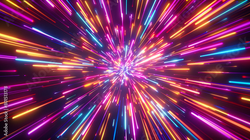 Wall mural neon lines converging in a psychedelic explosion of color 3d style isolated flying objects memphis s - Wall murals Wall mural neon lines converging in a psychedelic explosion of color 3d style isolated flying objects memphis s - Wall murals