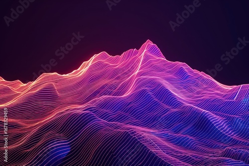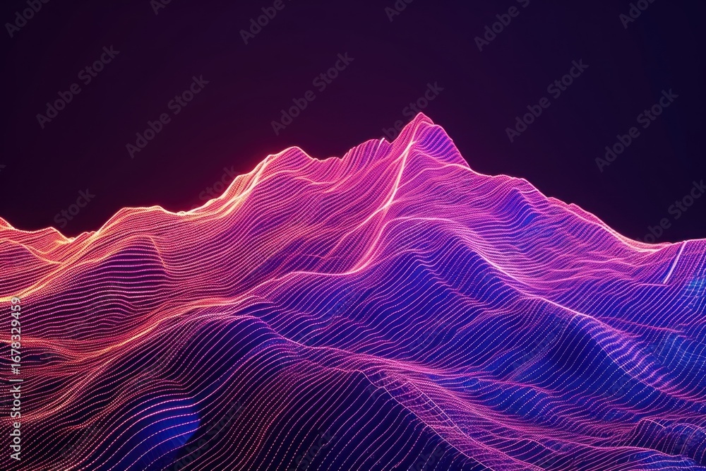 The watermark will not be included on Wall mural.: Neon mountain wireframe boder backgrounds abstract pattern -