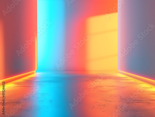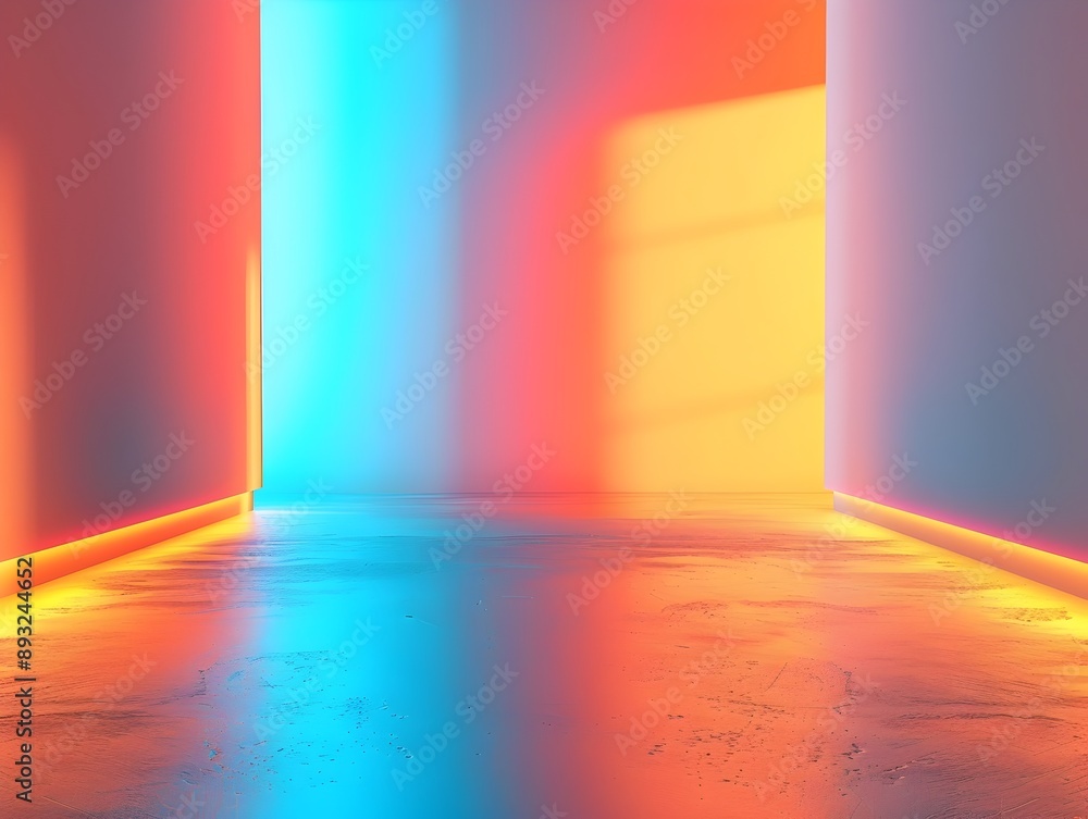 The watermark will not be included on Wall mural.: Neon orange and cyan gradient backdrop with glowing effect for futuristic product display