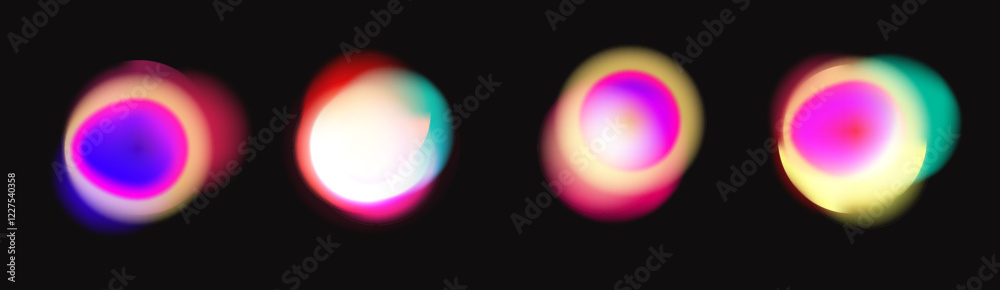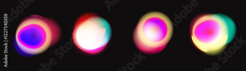 The watermark will not be included on Wall mural.: Neon round circles with blurred gradients, glowing frames with holographic light blur effect - vector