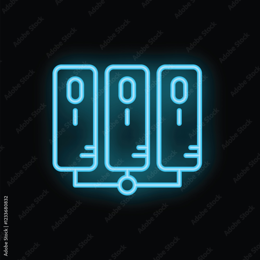 Wall mural : Neon servers network icon glowing on dark background representing concept of data storage