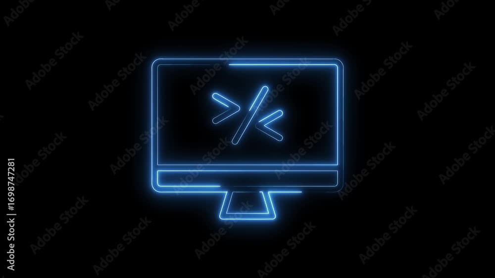 Wall mural neon style computer screen showing programming code isolated on black background digital technology