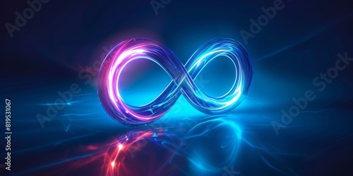 Wall mural neon symbol loop sign light background 3d line abstract infinite glow digital blue shape concept