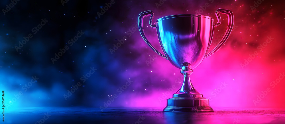 The watermark will not be included on Wall mural.: Neon trophy illuminated in vibrant colors creating a fantasy atmosphere with space for customized te