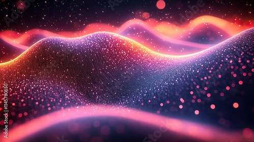 Neon waves and lines of particles represent connection, cybersecurity, futuristic technology, digitaWall mural