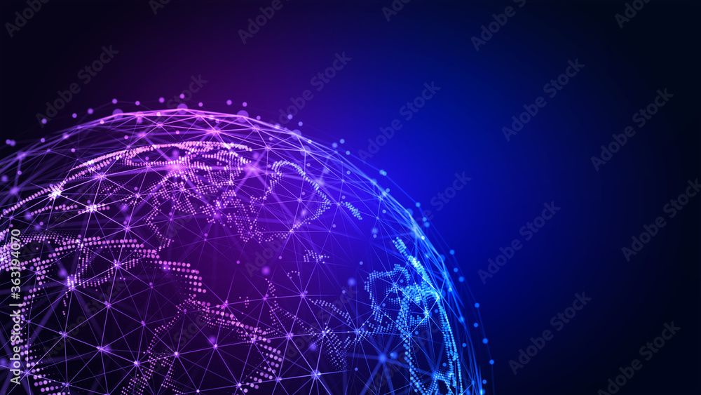 Wall mural network background with world map globe. internet and technology. 3d illustration.