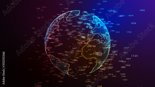 Wall mural network concept background with world map. internet and technology. 3d illustration.