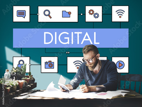 The watermark will not be included on Wall mural.: Network connection data internet technology concept
