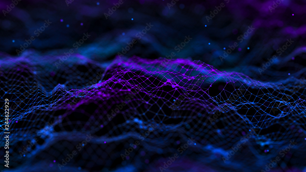 The watermark will not be included on Wall mural.: Network connection dots and lines - technology background - plexus - big data background - 3d rendering -