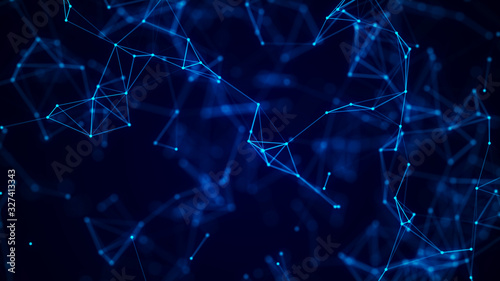 Wall mural : Network connection dots and lines - technology background - plexus - big data background - 3d rendering -