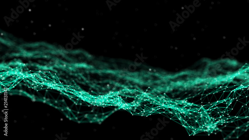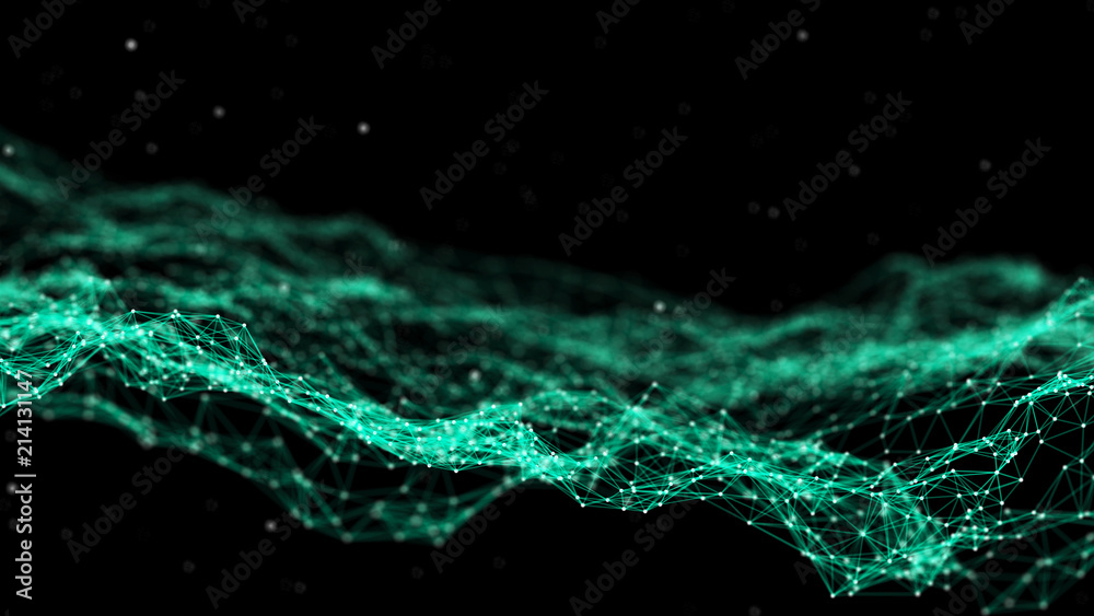 Wall mural network connection dots and lines. technology background. plexus. big data background. green. 3d ren - Wall murals Wall mural network connection dots and lines. technology background. plexus. big data background. green. 3d ren - Wall murals