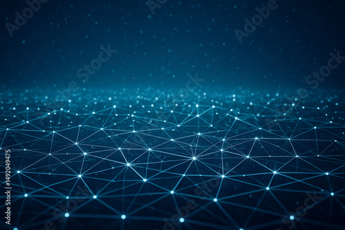 Wall mural network digital connections glowing on dark blue surface with particle rain above creating futuristi - Wall murals Wall mural network digital connections glowing on dark blue surface with particle rain above creating futuristi - Wall murals