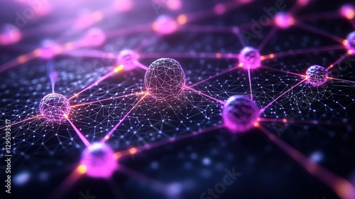 Wall mural network of connected lines and dots on dark indigo background with glowing molecular mesh design - Wall murals Wall mural network of connected lines and dots on dark indigo background with glowing molecular mesh design - Wall murals