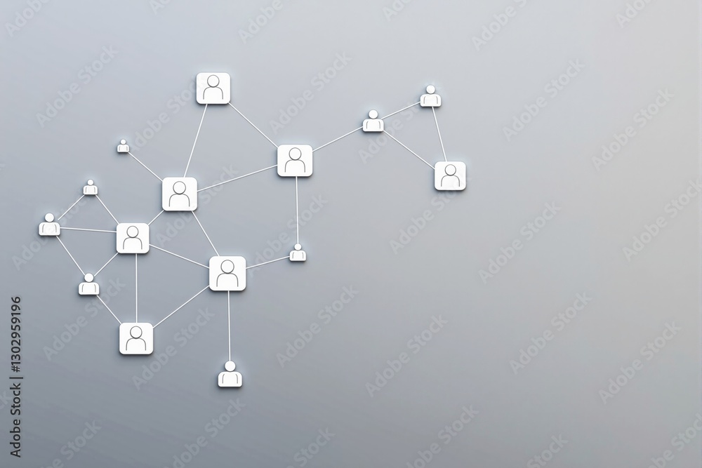 Wall mural network of interconnected user icons on a light grey background. - Wall murals Wall mural network of interconnected user icons on a light grey background. - Wall murals