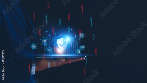 The watermark will not be included on Wall mural.: Network security system - personal data information on tablet - information and cyber security technol