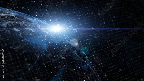 Wall mural network sphere with shiny star light and digital numbers. artistic artificial intelligence globe in  - Wall murals Wall mural network sphere with shiny star light and digital numbers. artistic artificial intelligence globe in - Wall murals