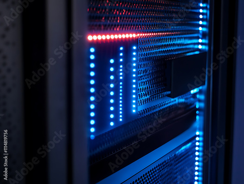 Wall mural network switch and ethernet cable in rack cabinet, network connection technology and has a status le