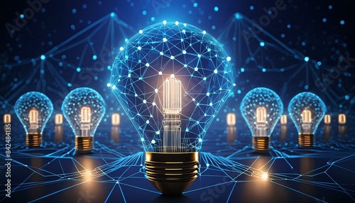 The watermark will not be included on Wall mural.: Network technology in the form of light bulbs -