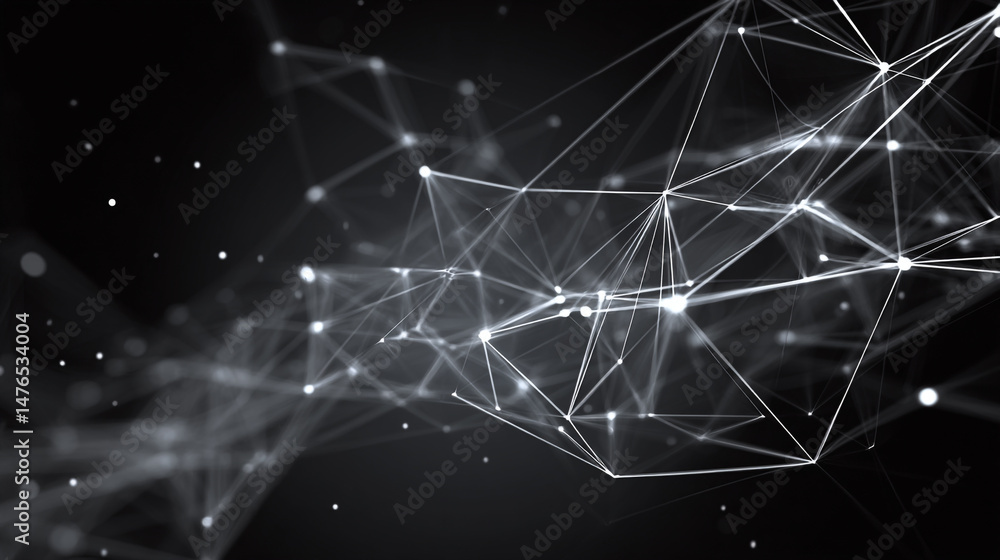Wall mural network with glowing nodes and connections, abstract cosmic network of stars and geometric shapes in