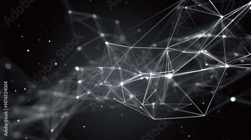 The watermark will not be included on Wall mural.: Network with glowing nodes and connections, abstract cosmic network of stars and geometric shapes in