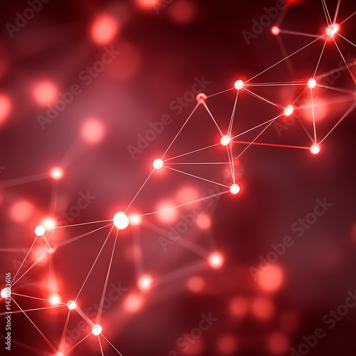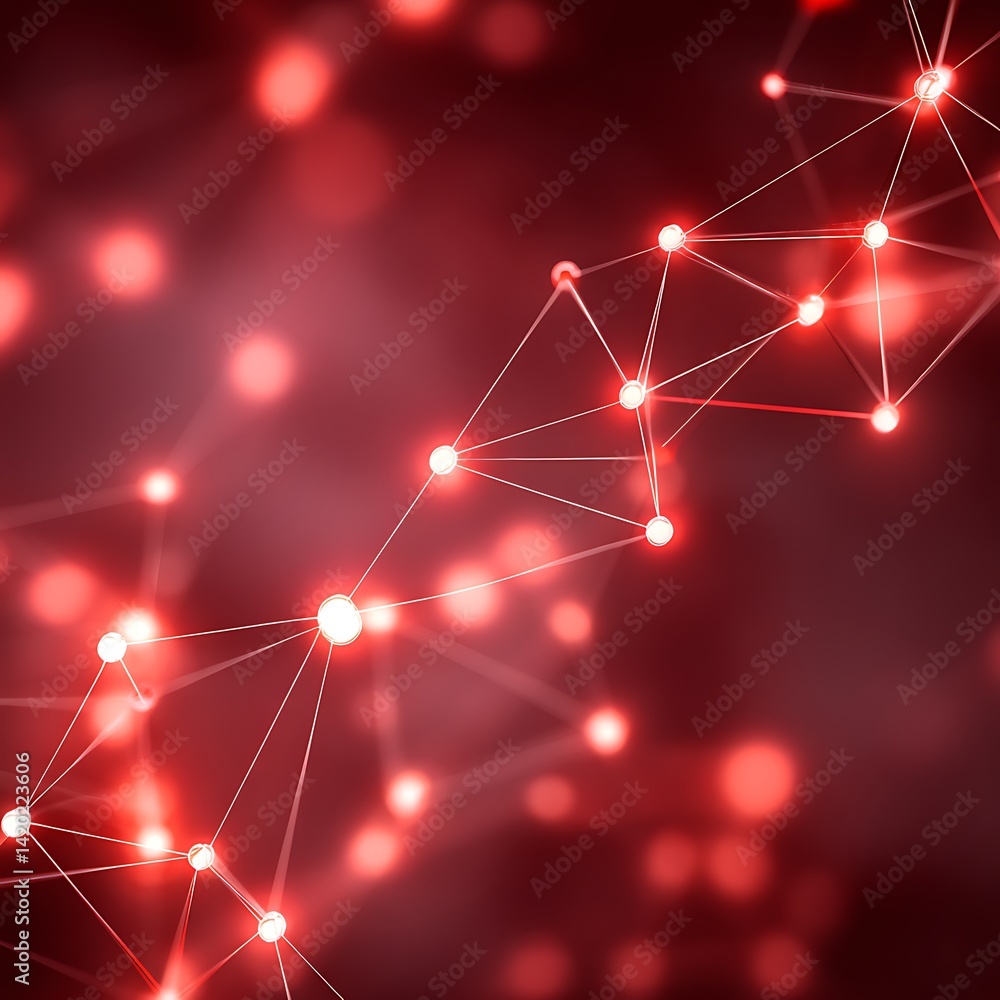 The watermark will not be included on Wall mural.: Networked connectivity nodes with red luminous points for technological and scientific advancement -