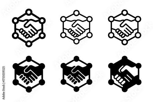 The watermark will not be included on Wall mural.: Networking logo variations - your network is your net worth - set logo of networking: connected handsh