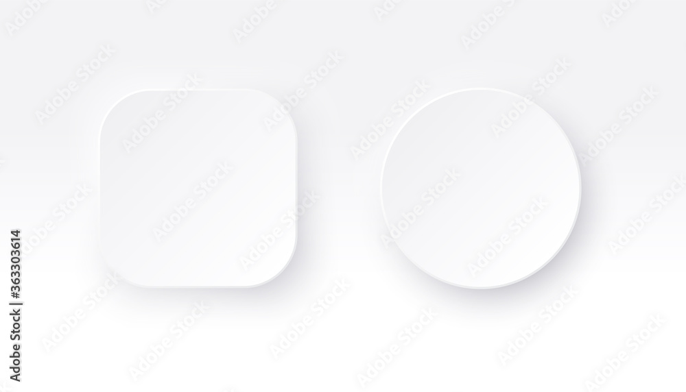 The watermark will not be included on Wall mural.: Neumorphic square and round buttons - white geometric shapes in a trendy soft 3d style with shadow -