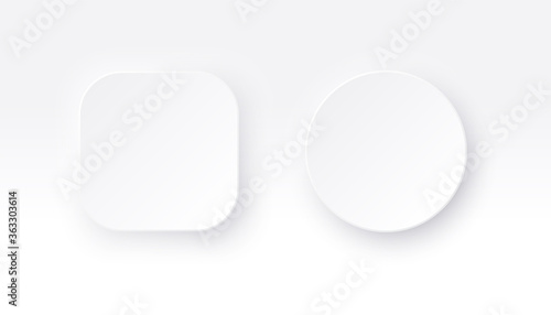 Wall mural neumorphic square and round buttons. white geometric shapes in a trendy soft 3d style with shadow.
