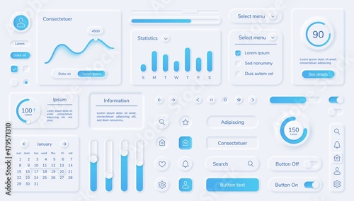 Wall mural neumorphic user interface elements, mobile app ui design kit. buttons, bars, sliders in neumorphism