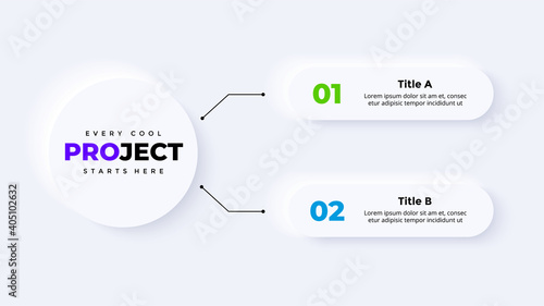 Wall mural neumorphic vector infographic. presentation slide template. circles scheme. 2 options. neumorphism u
