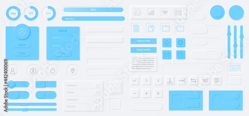 The watermark will not be included on Wall mural.: Neumorphism style elements vector set - modern website or mobile app design bundle - minimal style neu