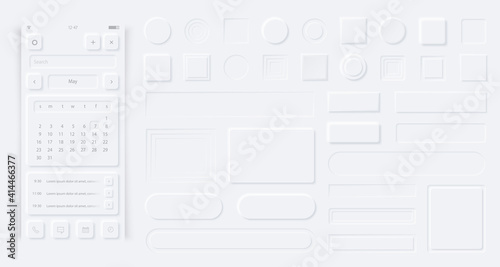 The watermark will not be included on Wall mural.: Neumorphism style elements vector set - modern website or mobile app design - minimal style neumorphis