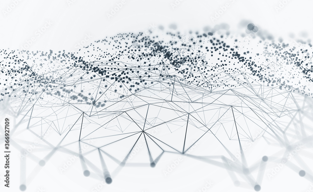 The watermark will not be included on Wall mural.: Neural network 3d illustration - abstract big data concept - global database and artificial intelligen