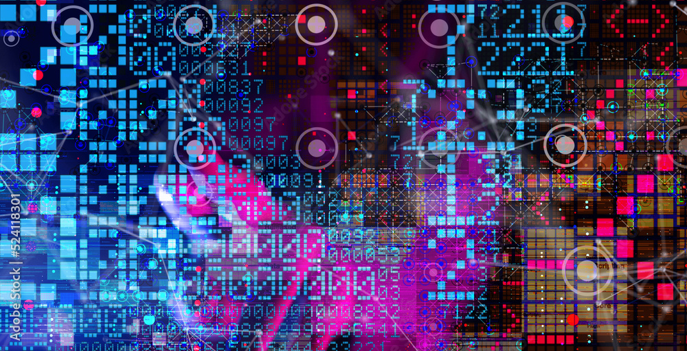Wall mural neural network 3d illustration. big data and cybersecurity