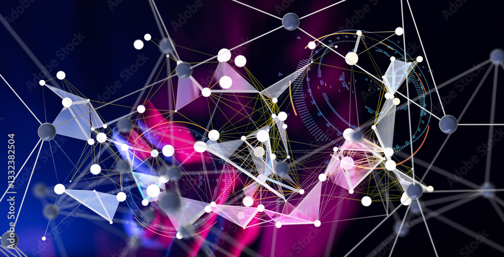 Neural network 3d illustration - big data and cybersecurityWall mural