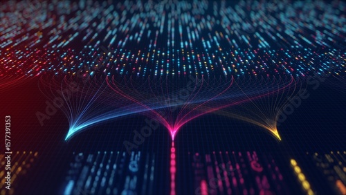 Wall mural neural network big data flow visualization, binary code matrix, ai machine learning abstract backgro