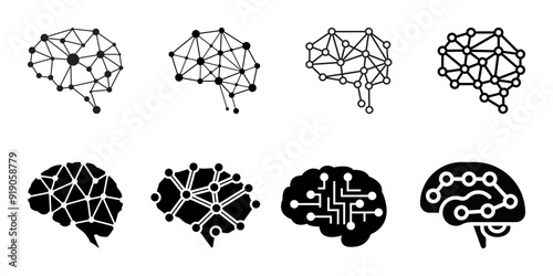 Neural network editable stroke and solid web icon set - neural network icon vector illustration - Wall mural