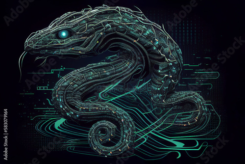 Wall mural neural network of a snake brain with data and artificial intelligence circuit board in the body of a