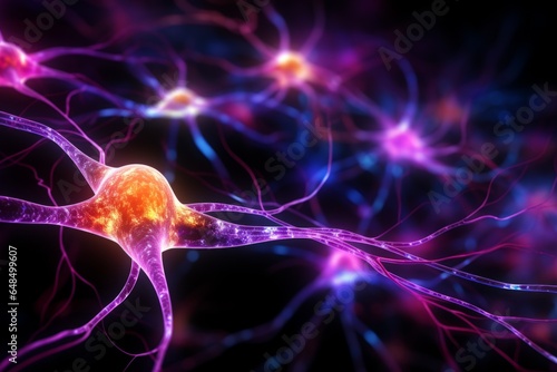 Wall mural : Neuron cells neural network under microscope neuro research science brain signal information transfe
