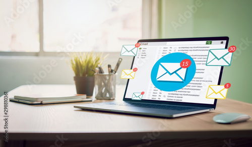 Wall mural new email alert on laptop, communication connection message to global letters in the workplace. - Wall murals Wall mural new email alert on laptop, communication connection message to global letters in the workplace. - Wall murals