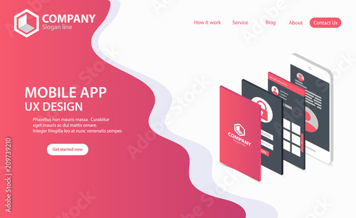 Wall mural : New trendy mobile app website landing page vector theme template design