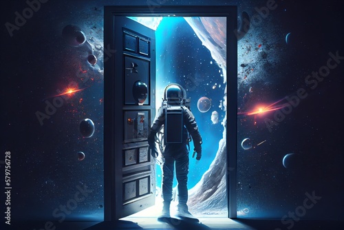 Wall mural new worlds of galaxies are discovered by an astronaut and cosmonaut in a fantastical portal to the v - Wall murals Wall mural new worlds of galaxies are discovered by an astronaut and cosmonaut in a fantastical portal to the v - Wall murals