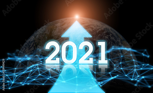 Wall mural : New year 2021 vision technology - global network for the exchange of data on the planet earth - blue b