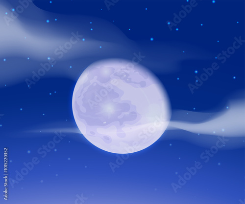 Wall mural night blue sky. full moon and clouds. starry space. midnight cloudscape. cosmic constellation. twili
