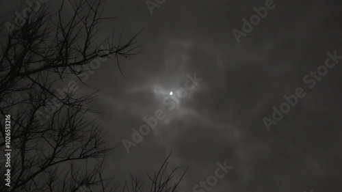 The watermark will not be included on Wall mural.: Night cloudy sky with the moon behind the flying clouds - solid translucent clouds in the moonlight a