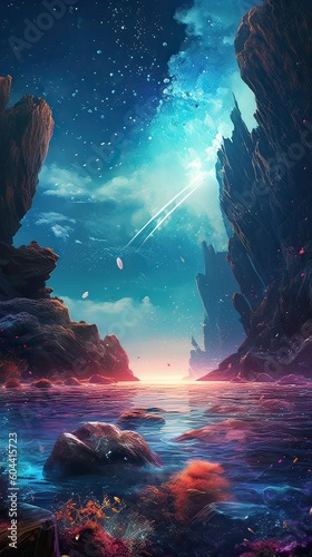 Wall mural night landscape with colorful milky way at sea. starry sky with the sea at night scence beautiful un - Wall murals Wall mural night landscape with colorful milky way at sea. starry sky with the sea at night scence beautiful un - Wall murals