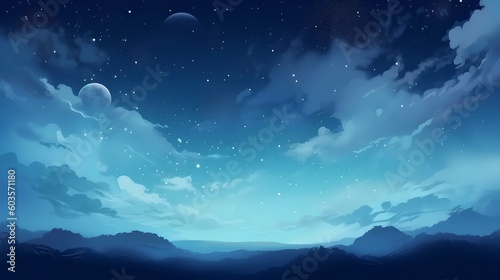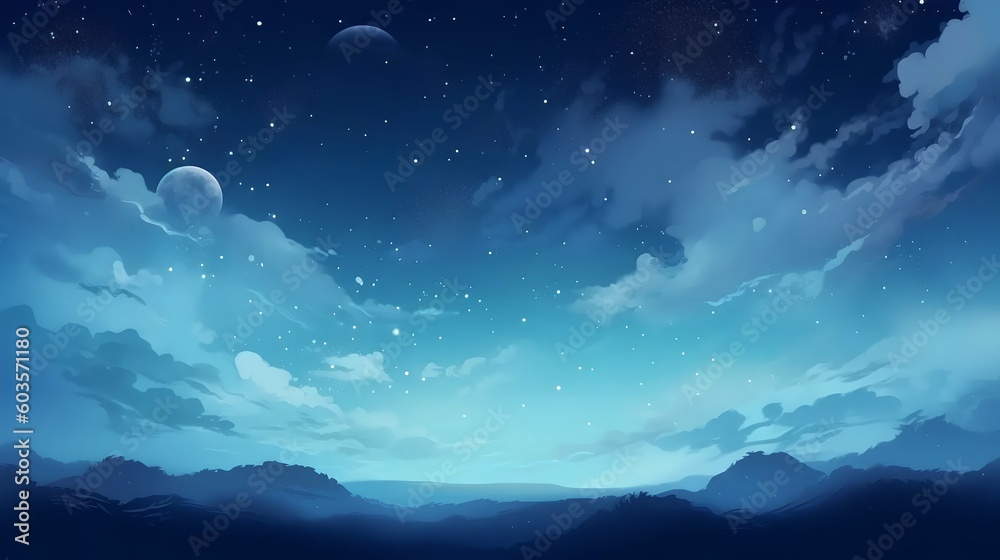 Wall mural night sky background with moon and blue sky. nature background generated in ai - Wall murals Wall mural night sky background with moon and blue sky. nature background generated in ai - Wall murals