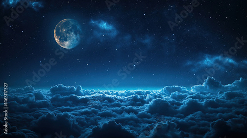 Wall mural night sky filled with stars and moon surrounded by clouds creating a peaceful celestial view - Wall murals Wall mural night sky filled with stars and moon surrounded by clouds creating a peaceful celestial view - Wall murals