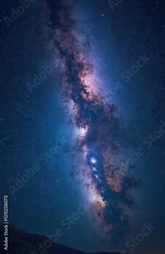 Wall mural night sky with blue milky way. stars, galaxy, space. astrophotography shows universe, cosmos. dark s
