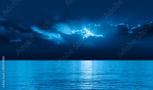 Wall mural night sky with moon in the dark clouds and darkblue sea in the foreground "elements of this image fu - Wall murals Wall mural night sky with moon in the dark clouds and darkblue sea in the foreground "elements of this image fu - Wall murals